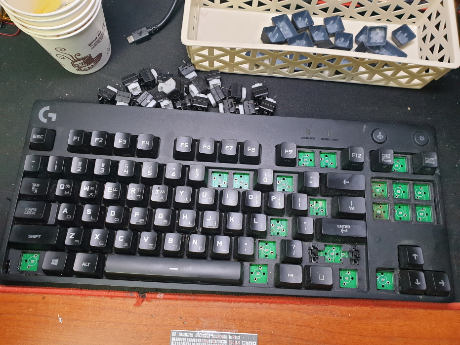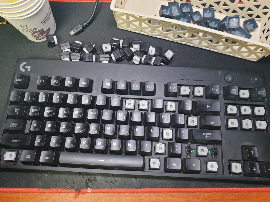 경기도 양주에서 채터링 간헐적안눌림으로 Logitech GPRO Y-U0031 로지텍키보드 사설 수리 고장 AS