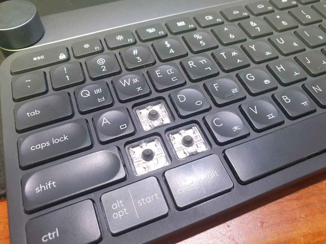경기도 남양주에서 키캡 빠짐이탈 파손벚겨짐으로 Logitech CRAFT 크래프트키보드 펜타그래프 병행수입 직구 사설 수리 고장 AS