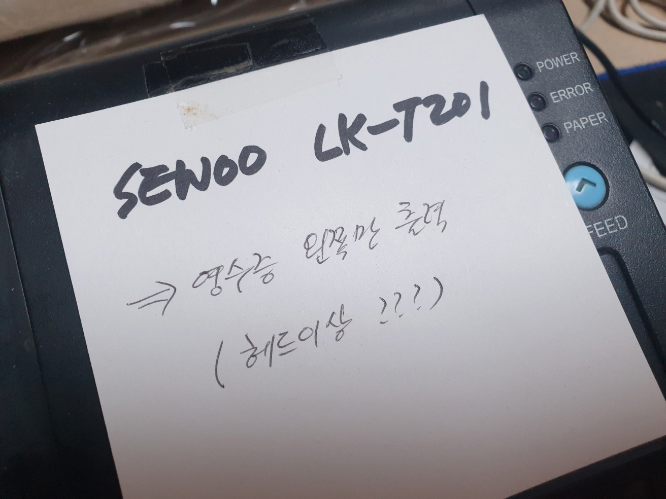 서울 광진구에서 영수증 왼쪽만 출력 인쇄됨으로 Sewoo LK-T201 포스 셀프주유소세우테크프린터 사설 수리 고장 AS