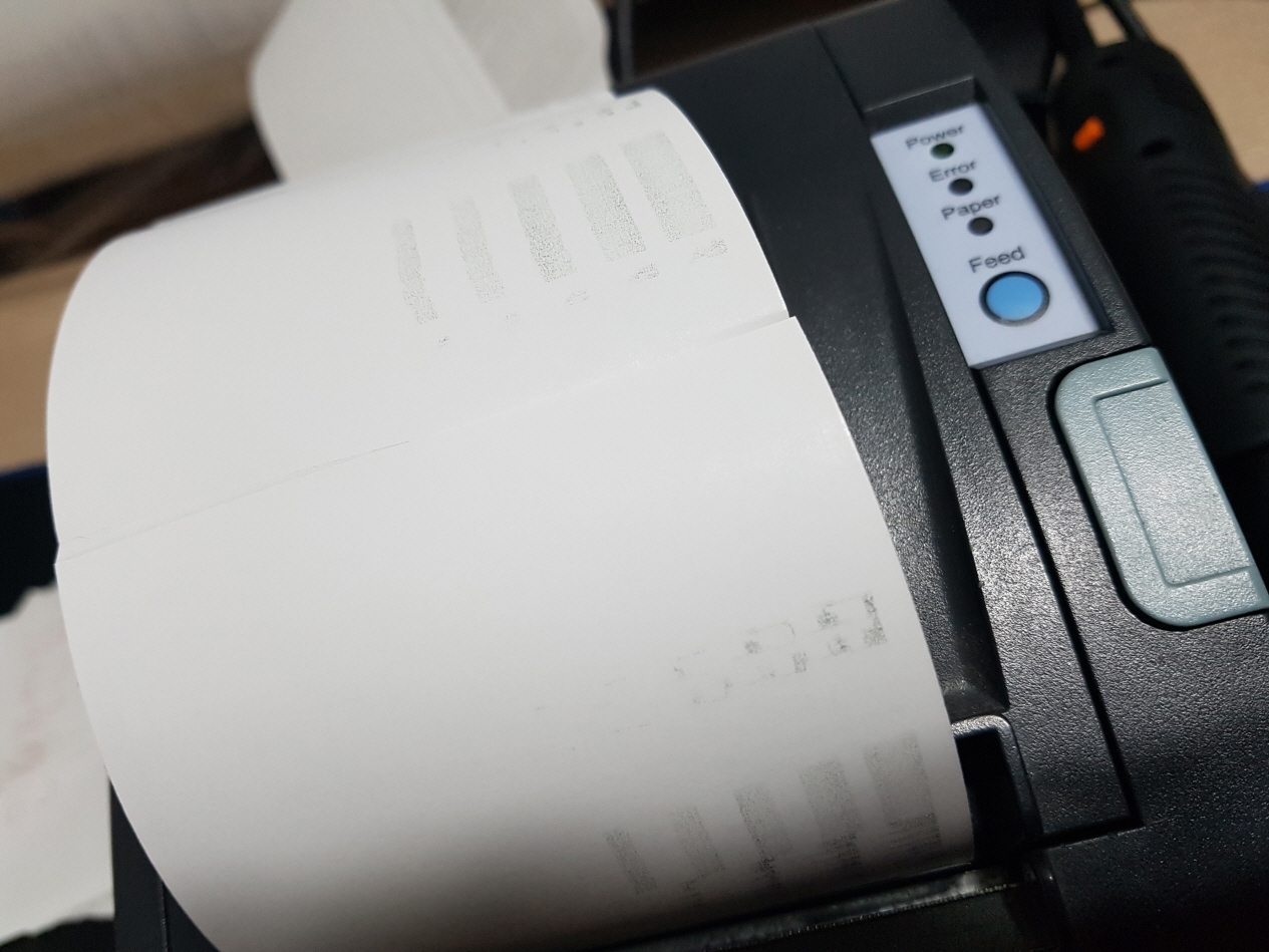 인쇄후 인쇄물이 흐리게 나오거나 일부 줄이가는듯이 인쇄되거나 일부분만 인쇄되고, 바코드출력후 바코드인식이 안되거나 반만 인쇄되는 문제, 백지출력 아예 인쇄가 안되고 용지만 나오는 증상 등 대부분 인쇄헤드 불량으로 헤드교체후 정상적인 사용이 가능합니다.