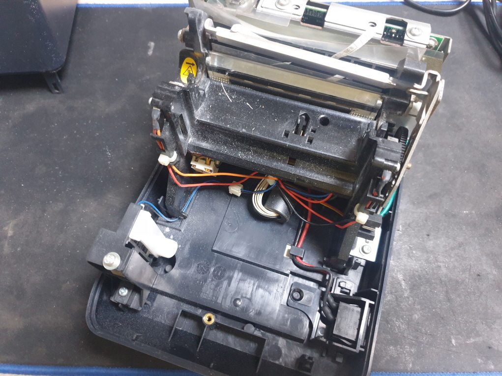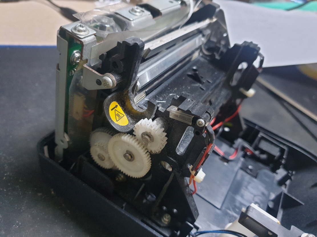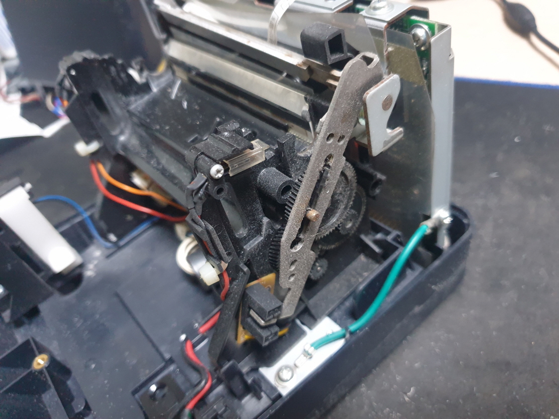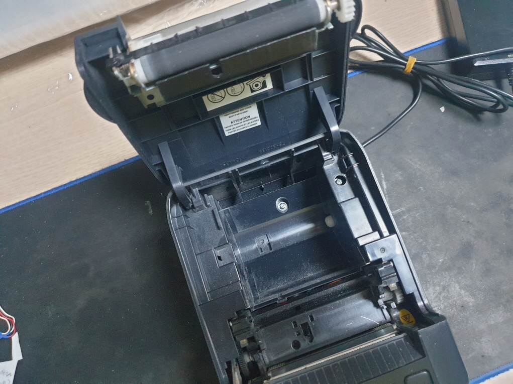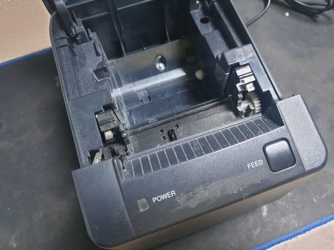 영수증 출력시 간헐적으로 용지배출이 안되며 용지가 안에서 말리는 증상으로 수리 진행합니다.