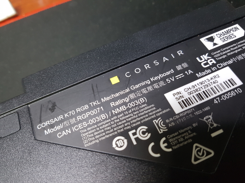 원주시 흥업면에서 일부 키가 계속눌려짐으로 Corsair k70 RGB TKL RGP0071 커세어키보드 병행수입 직구 사설 수리 고장 AS