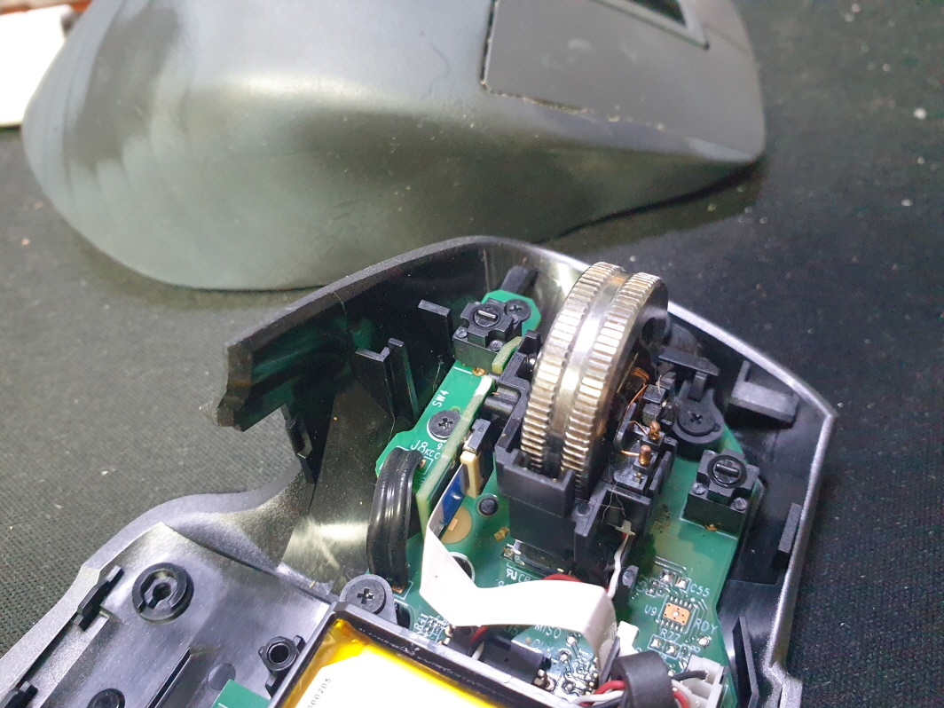 좌버튼 드래그 잘안되거나 풀림 증상인 버튼내 스위치불량으로 새 스위치 카일 저소음 옐로우스위치 좌우교체 수리 진행합니다.