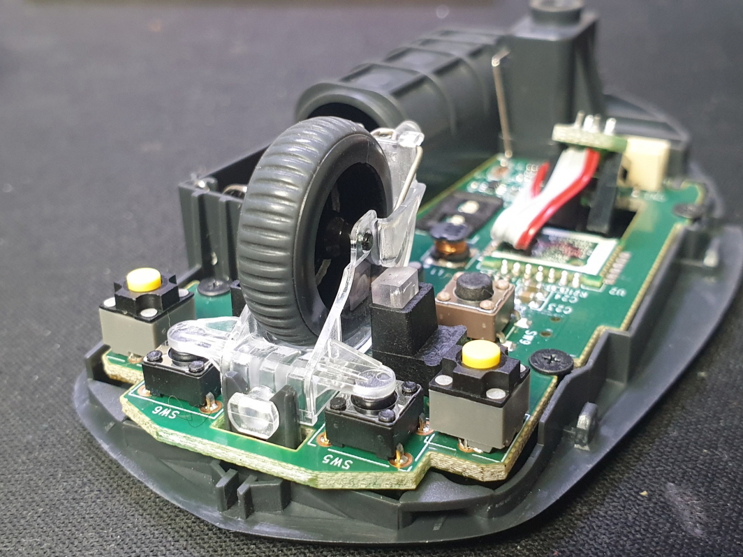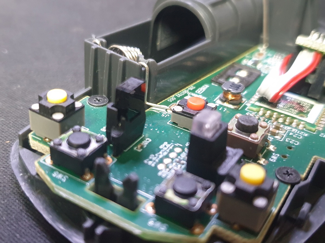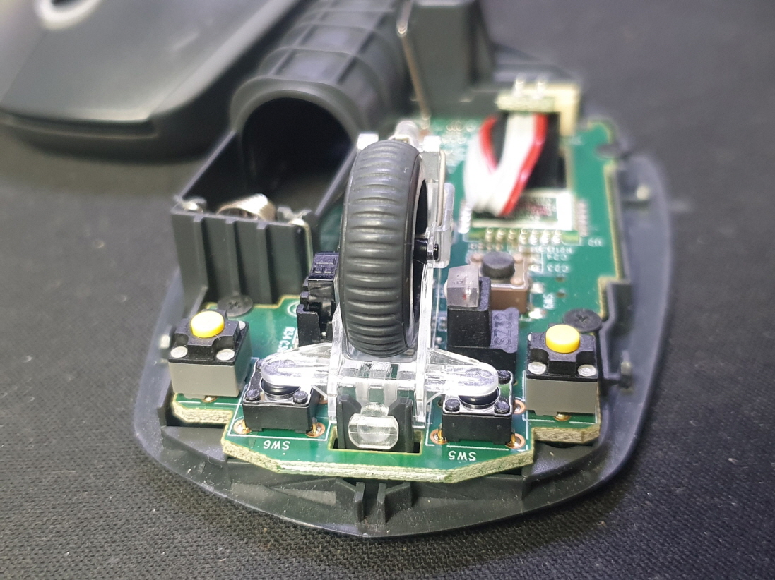 오른쪽버튼 간헐적 안눌림 증상인 버튼내 스위치불량으로 새 스위치 카일 저소음 옐로우스위치 좌우교체 수리 진행합니다.