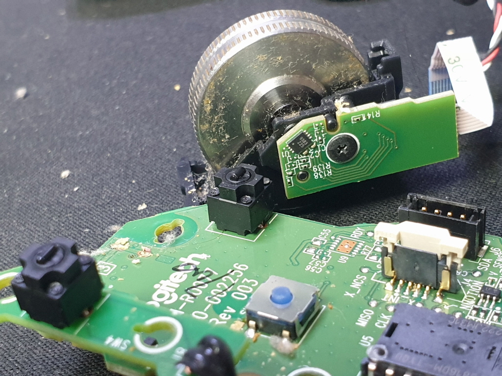 휠센서불량으로 휠센서교체수리 진행합니다. 휠센서불량은 휠팅김, 스크롤시 위아래로 잘 안움직이거나 아예 반응이 없는 경우 발생되는 현상이며 센서교체후 정상적인 사용이 가능합니다.