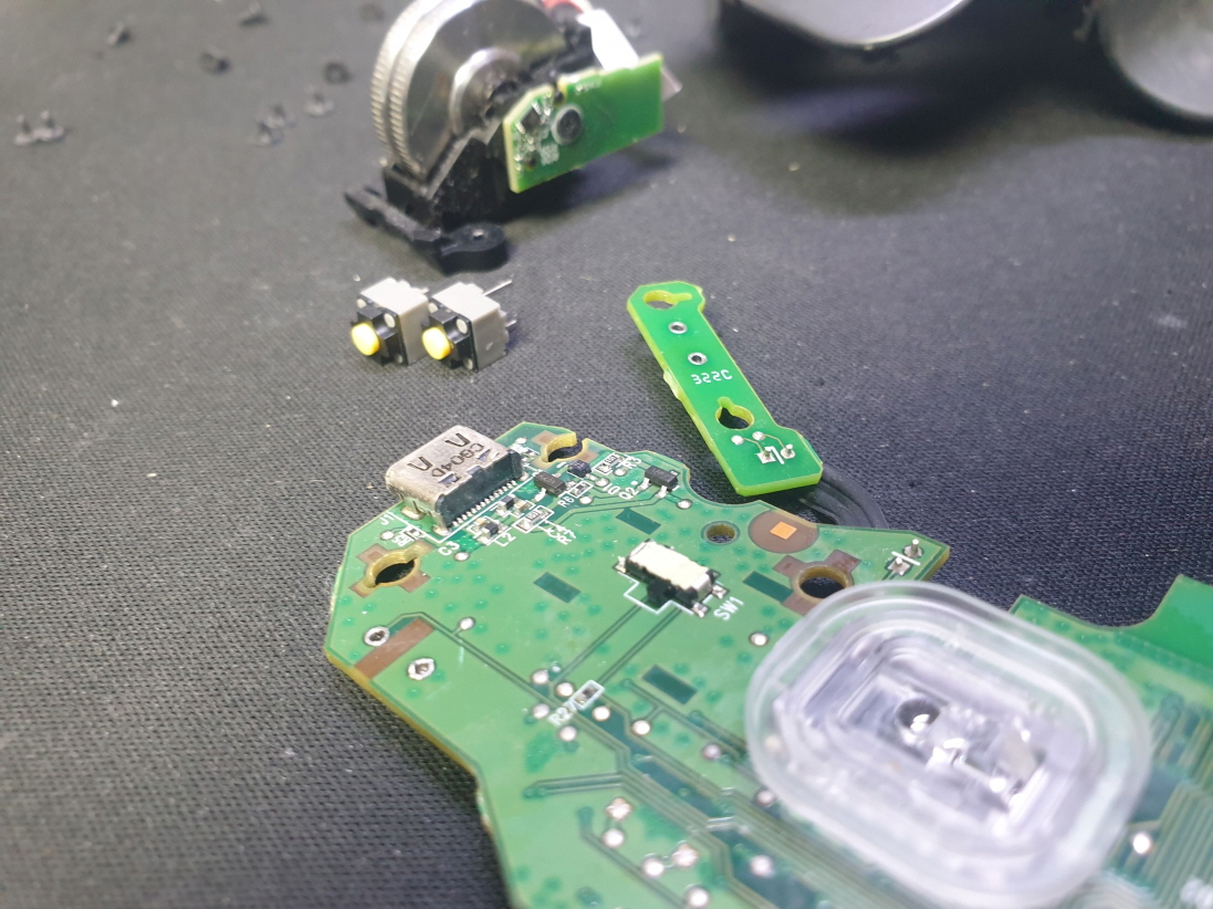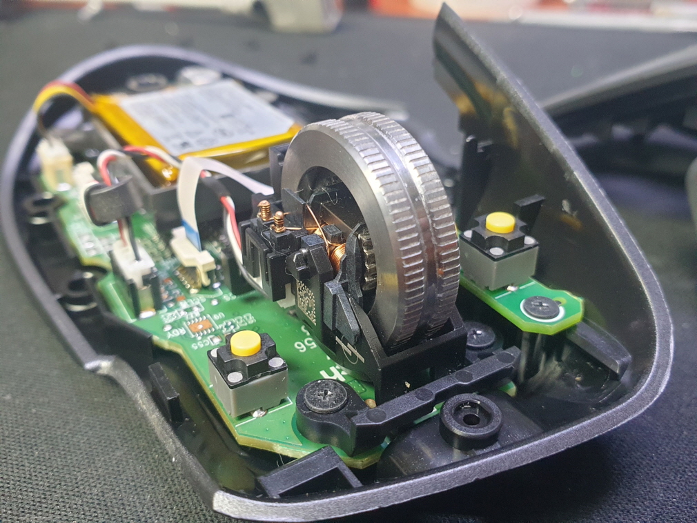 휠센서불량으로 휠센서교체수리 진행합니다. 휠센서불량은 휠팅김, 스크롤시 위아래로 잘 안움직이거나 아예 반응이 없는 경우 발생되는 현상이며 센서교체후 정상적인 사용이 가능합니다.