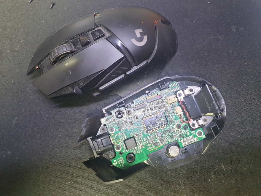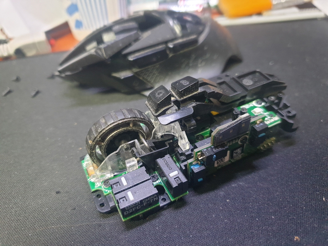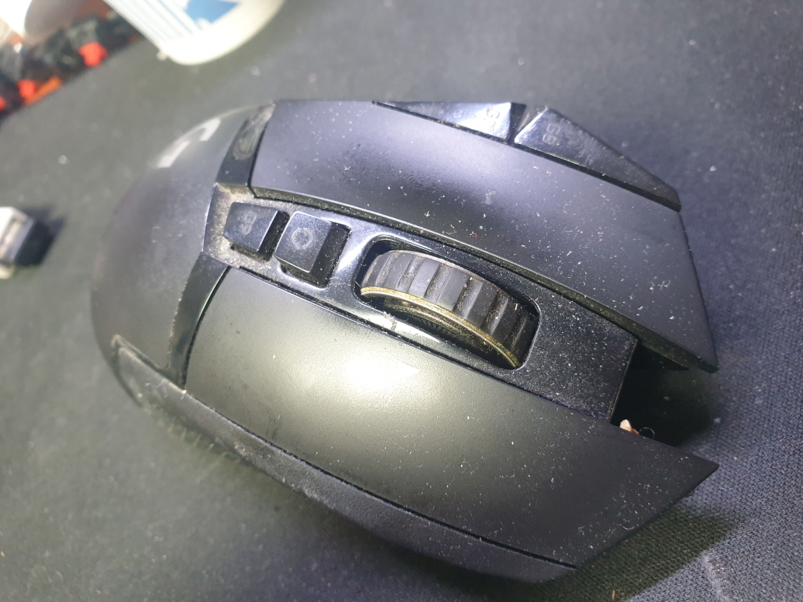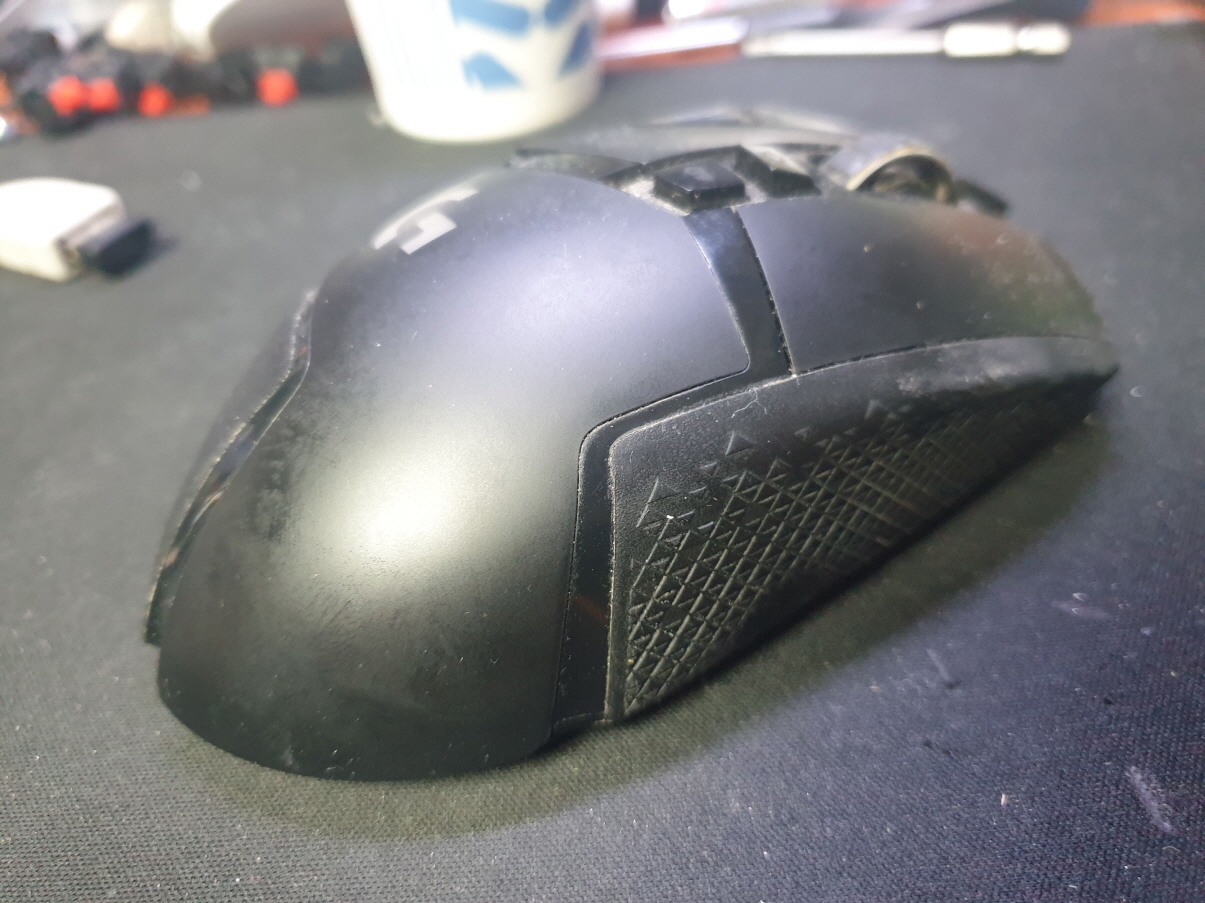 서울 양천구에서 왼쪽더블클릭증상으로 방문 입고된 Logitech G502 MR0076 로지텍 무선 마우스 사설 수리 AS