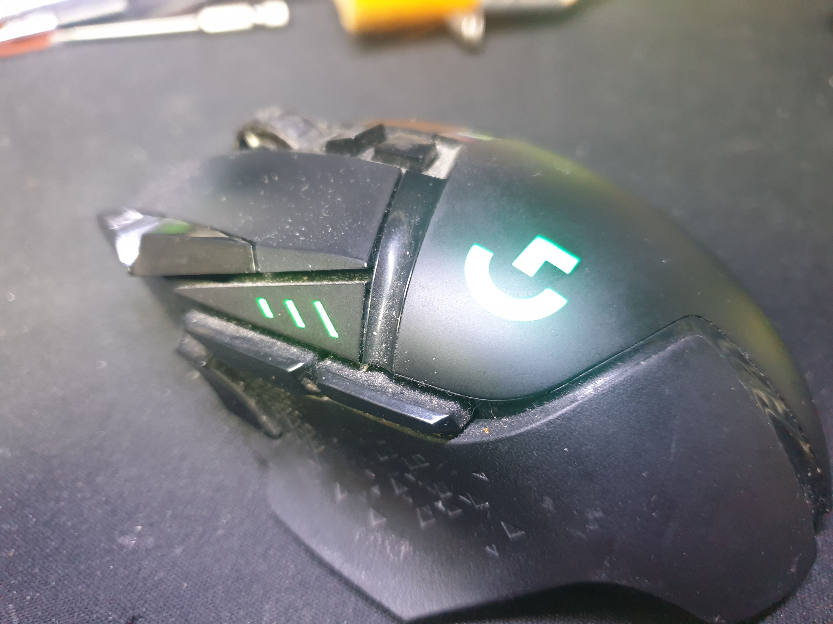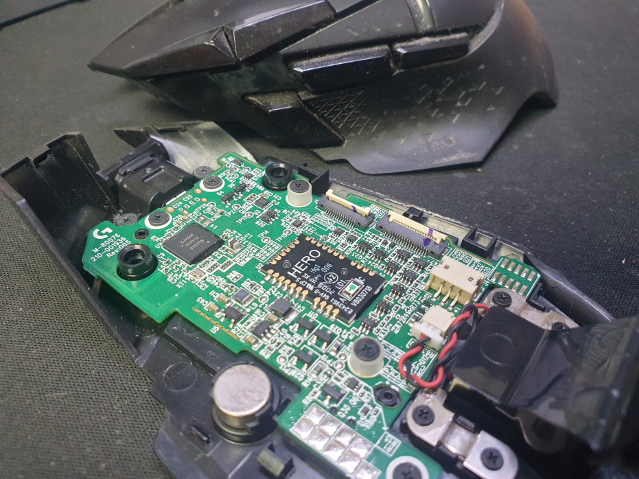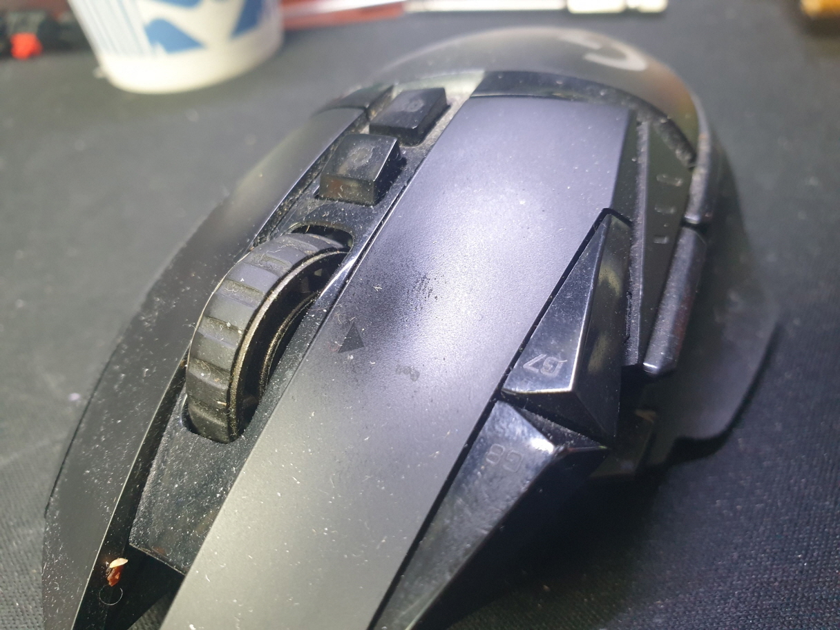 서울 양천구에서 왼쪽더블클릭증상으로 방문 입고된 Logitech G502 MR0076 로지텍 무선 마우스 사설 수리 AS