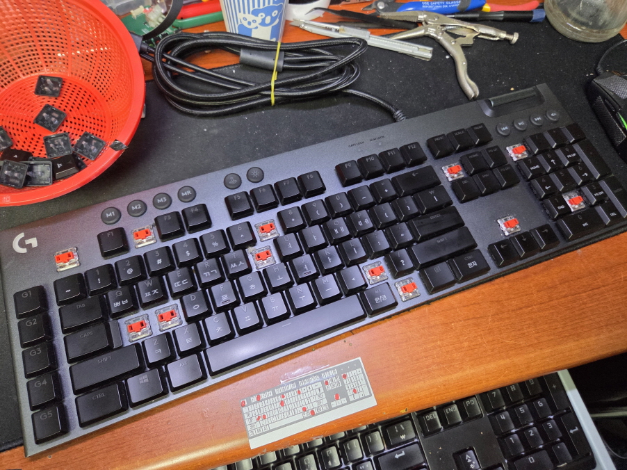 서울 양천구에서 키가 씹히거나 여러번눌림 G813 로지텍키보드 사설 수리 AS