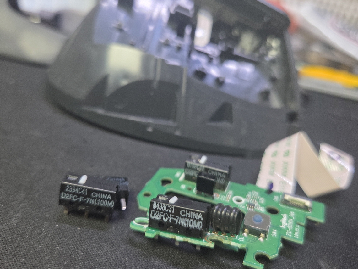 오른쪽 버튼 잘 안눌리는 문제인 단순 버튼내 스위치불량으로 새 스위치 D2FC-F-7N(100M) 좌우교체 수리 진행합니다.