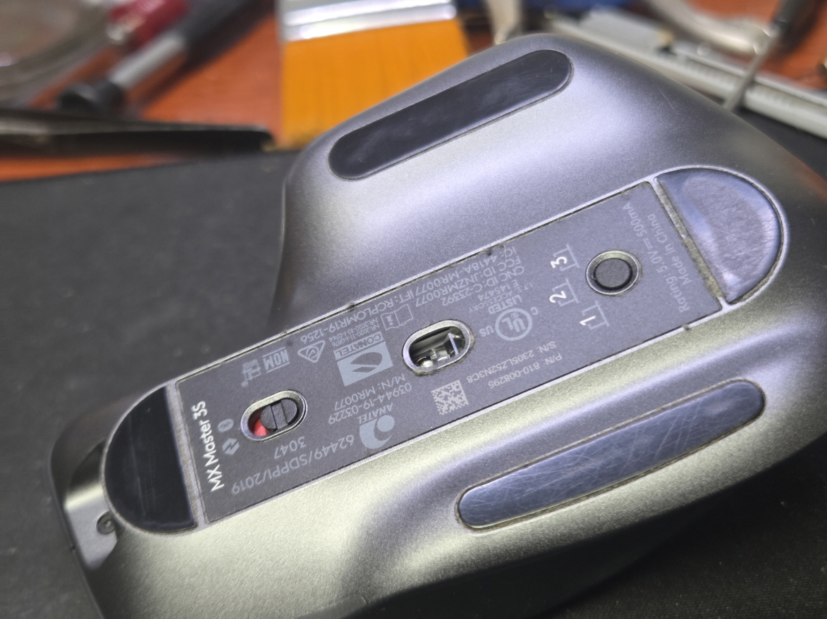 경기도 양평에서 클릭이 안눌리거나 여러 번 눌리는 현상으로 택배입고된 Logitech MX Master 3s 로지텍 마스터 블루투스 무선 마우스 해외직구 사설 수리 고장 AS