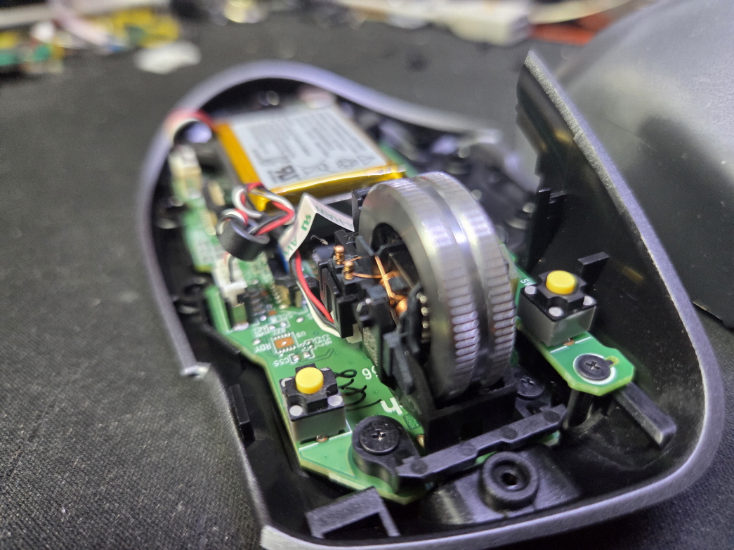 고객님께서 "좌우버튼스위치교체 카일저소음스위치(옐로우) 클릭이 안눌리거나 여러 번 눌리는 현상, 드래그 앤 드롭 중 풀리거나 끊김현상이 자주 발생" 으로 수리요청해주셨습니다.