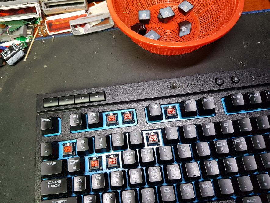 경기도 구리에서 음료를쏟아 키가 잘 안눌림으로 Corsair k63 RGP0045 커세어키보드 병행수입 직구 사설 수리 고장 AS