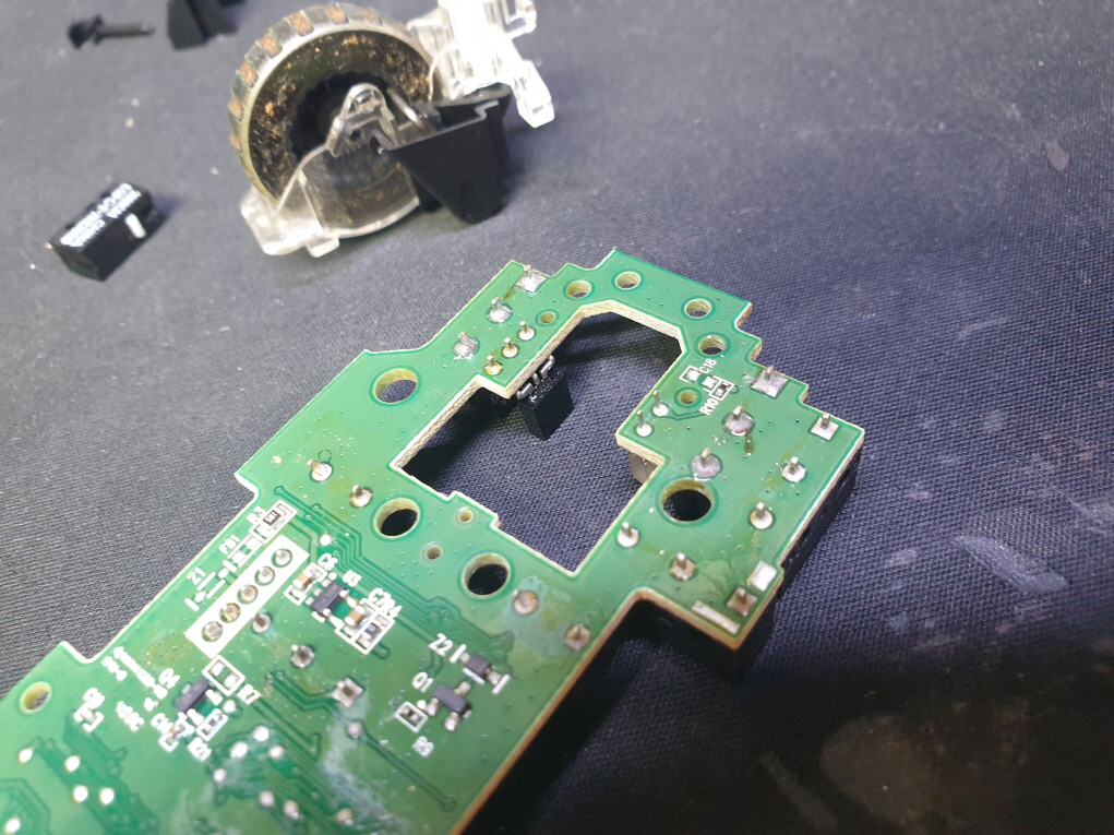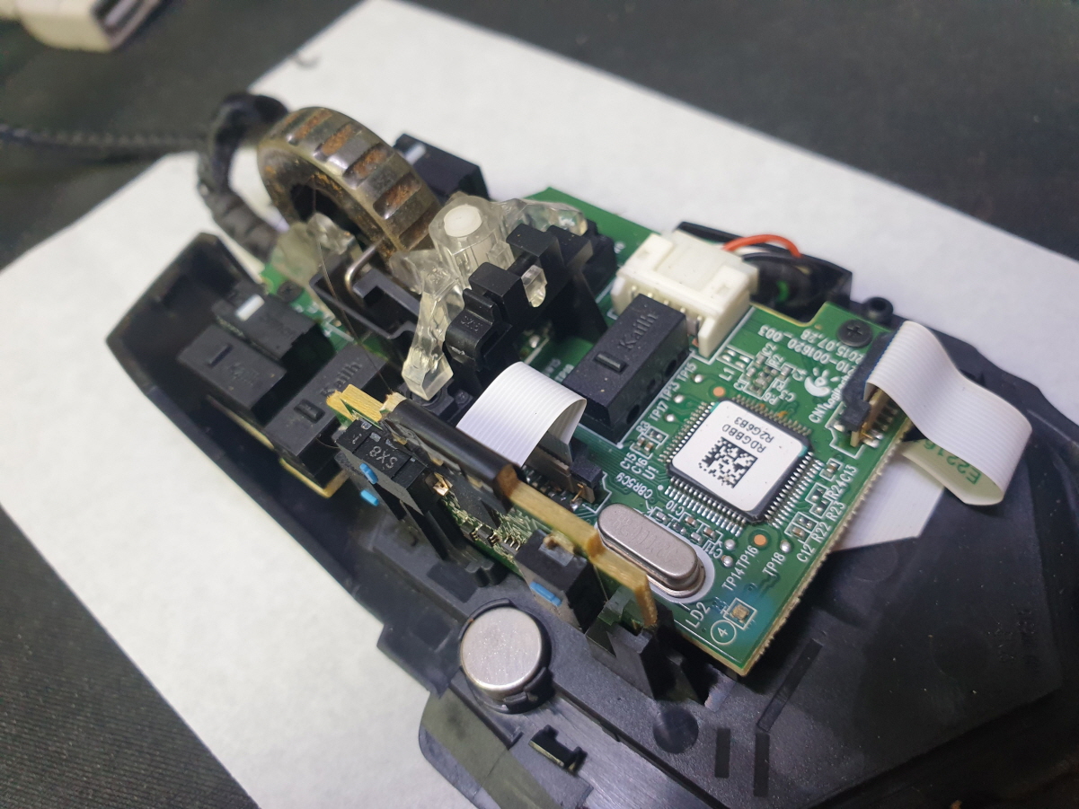 휠센서불량으로 휠센서교체수리 진행합니다. 휠센서불량은 휠팅김, 스크롤시 위아래로 잘 안움직이거나 아예 반응이 없는 경우 발생되는 현상이며 센서교체후 정상적인 사용이 가능합니다.